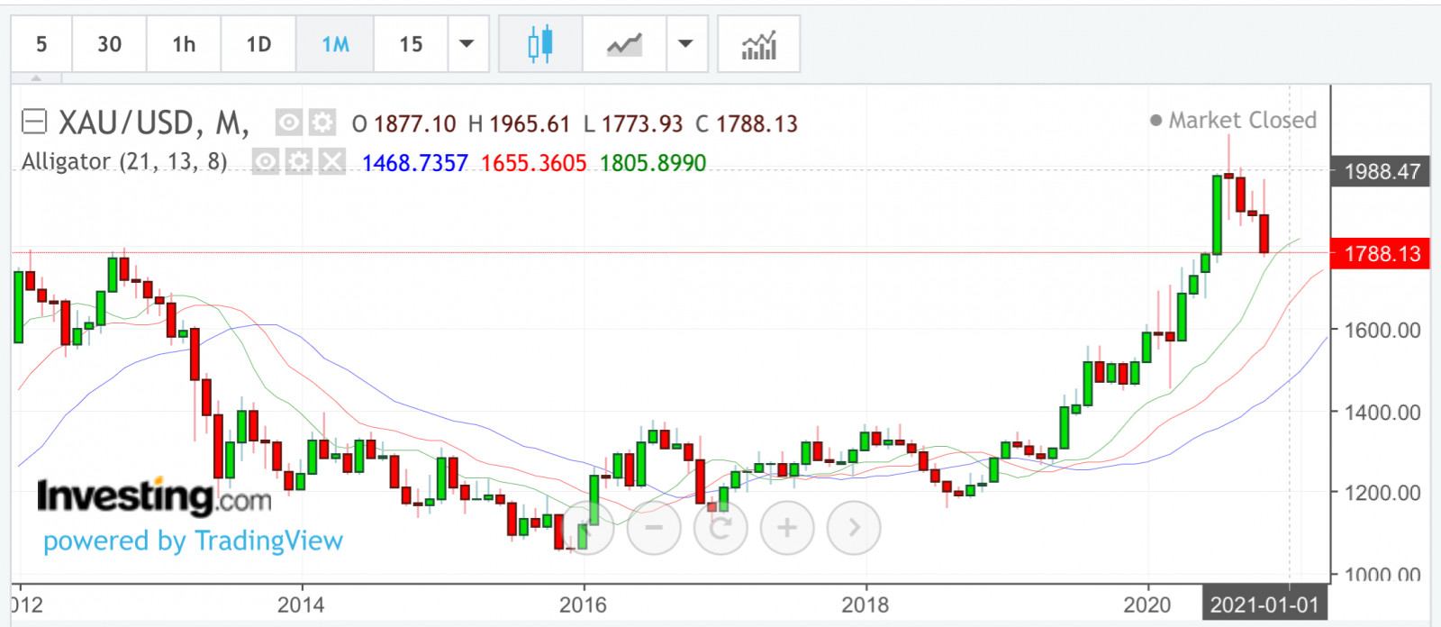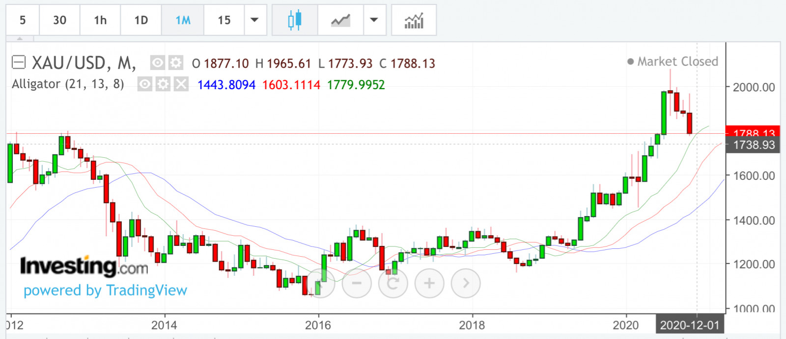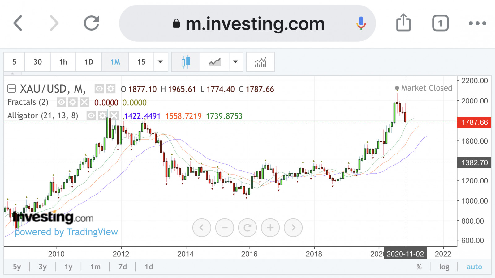 而黃金呢?就以2020黃金已創下歷史性新高,而美股也創下歷史性新高,二者不約而同創下歷史新高,這就是二者已高風險性非常非常大。