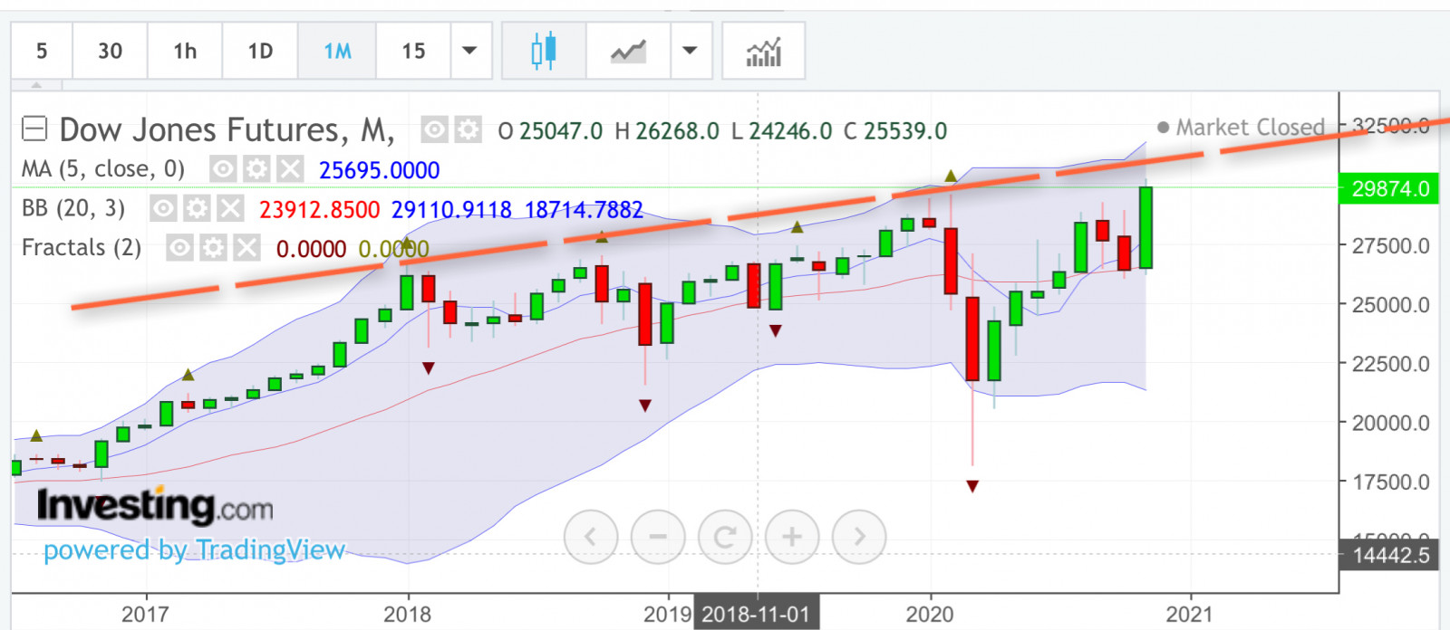 其實美股3月以後就開始做頭部了,股市頭部作多久呢?大概會在頸線位置上下讓人有錯覺感(突破30,000點)。