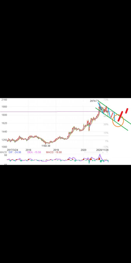 而黃金呢?就目前正再進行最後的月線整理(顧明思議就是月線整理完將進行最後末升段漲勢),黃金月線何時整理完?你就看美股何時跌破(頸線),一但股市跌破頸線黃金就整理完畢,股市跌破頸線就會開始下跌,同時,黃金月線整理完畢開始上漲,一個盤頭結束向下探底,一個借機(假突破)創歷史第二新高也就是末升段,此末升段漲勢過程中來來回回也開始作頭部。這就是股市/黃金的板塊移動。