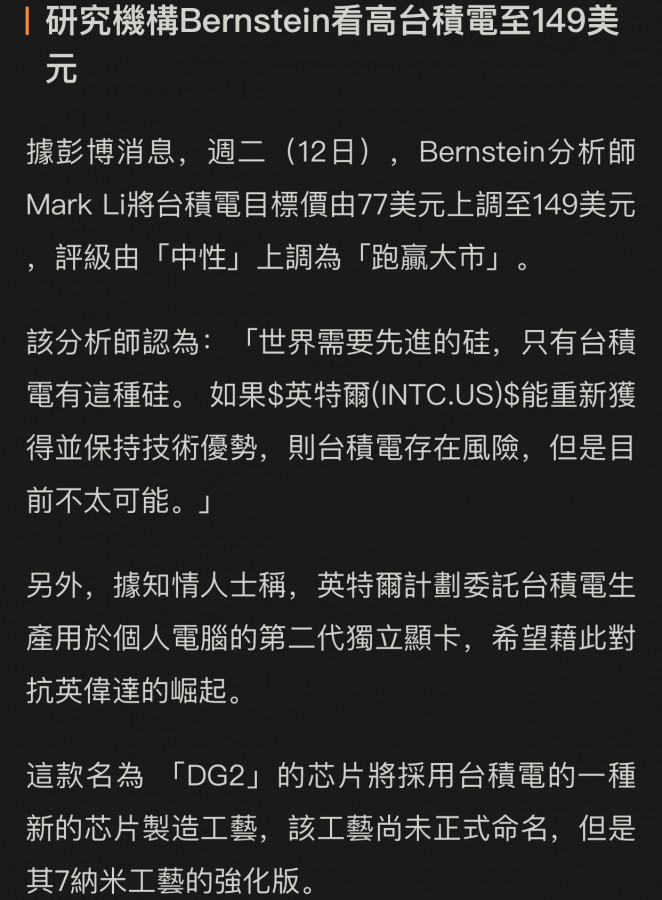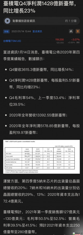 回覆 背包客:台積電第四季度淨利潤1428億台幣,市場...