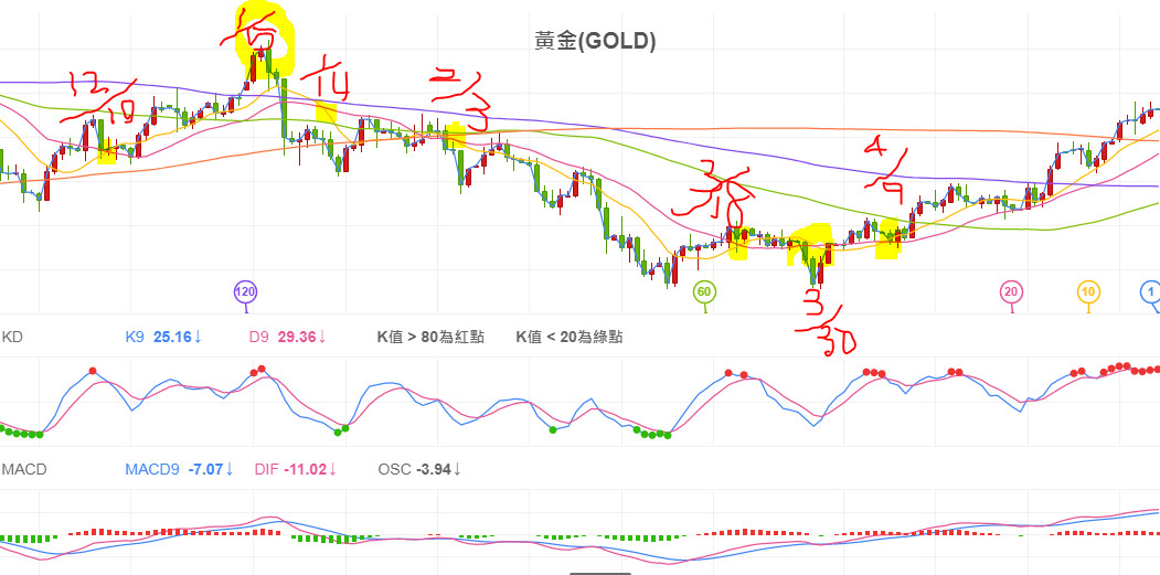問題(3)黃金60/120月均線上下移動速度,與股票可否應用?
