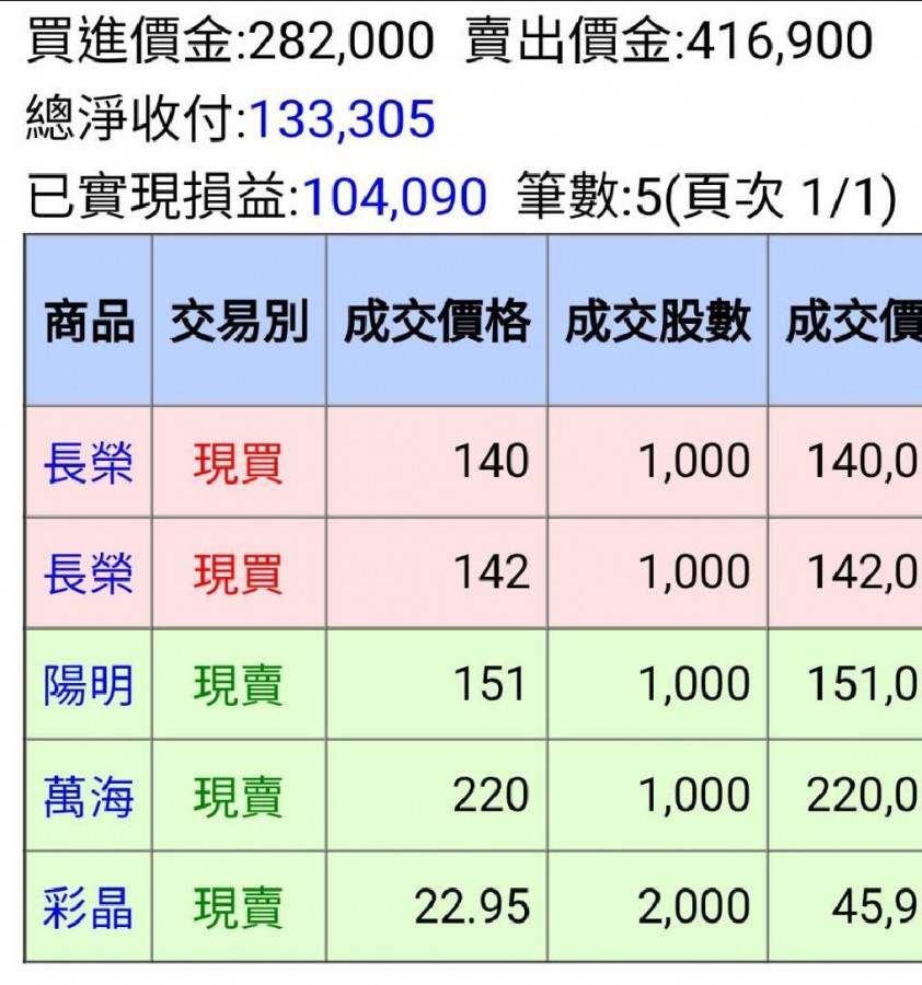 回覆 會思考的動物:昨日買的阿榮1張105,今日算是隔日沖1...