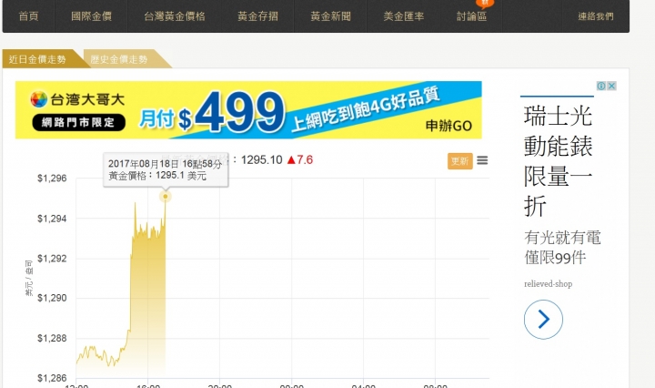 事後兩三下→黃金大盤又回漲至1288美圓了。