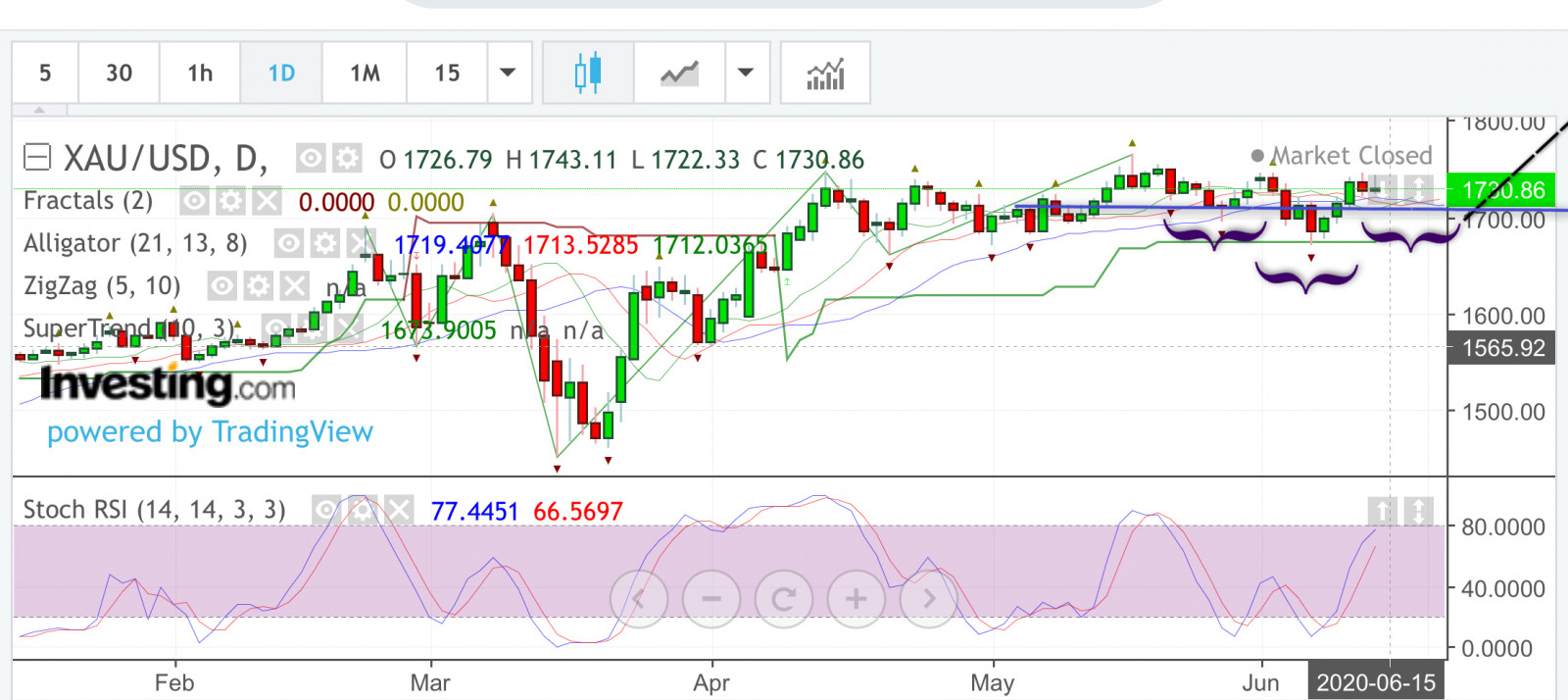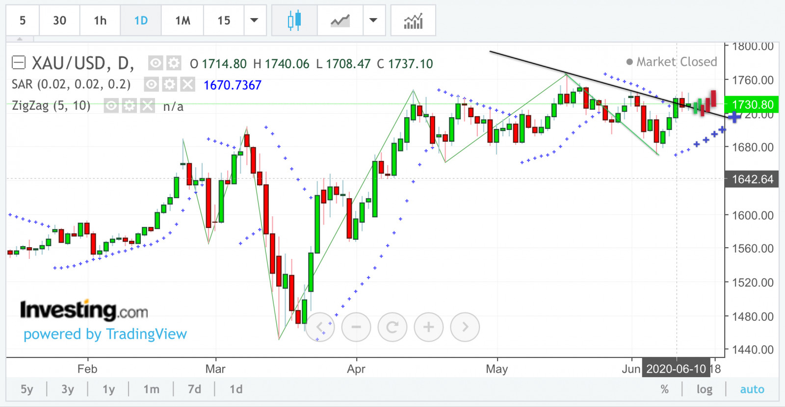 XAU/USD 6月下旬走勢