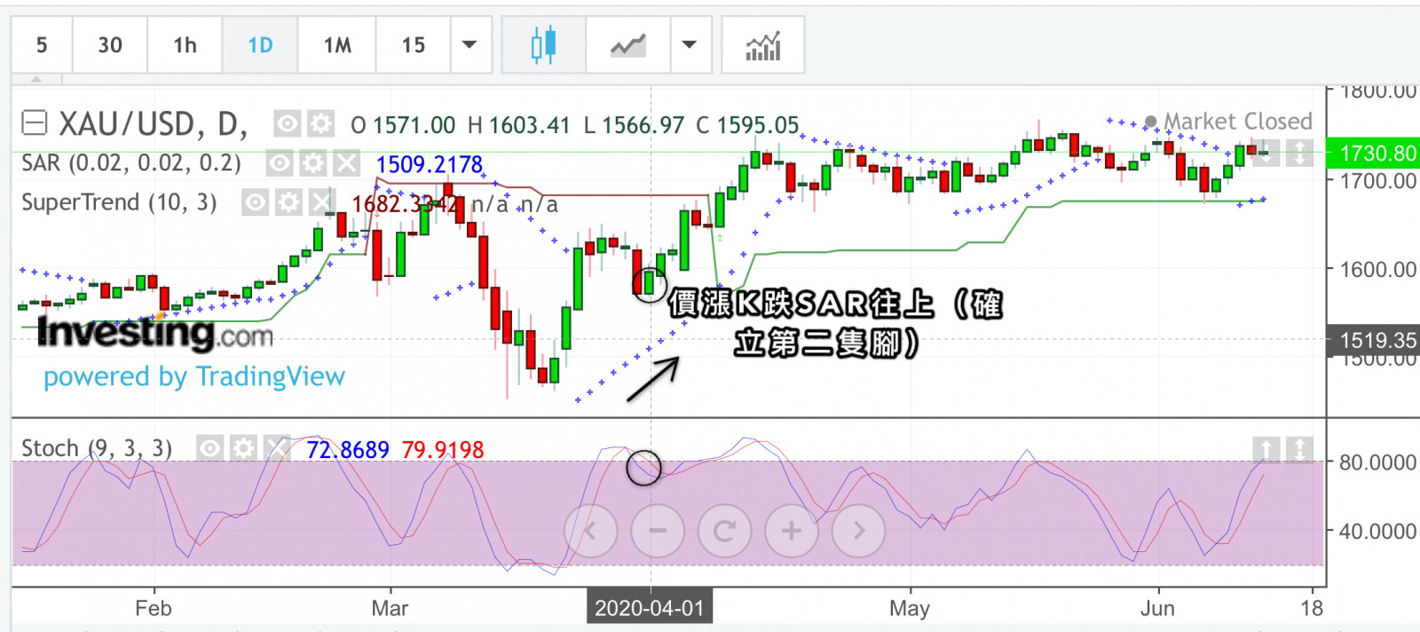 現在我們正在迎接第二波段低點來到,從日線看就能看出目前正在盤整期間會盤多久呢?首先看目前(6月最低點$1670)是否為第二波低點呢?該如何判斷第一從修正期間(價回測均線)第一波修正期間價回測週線(20週均線)後在站上開始起漲。