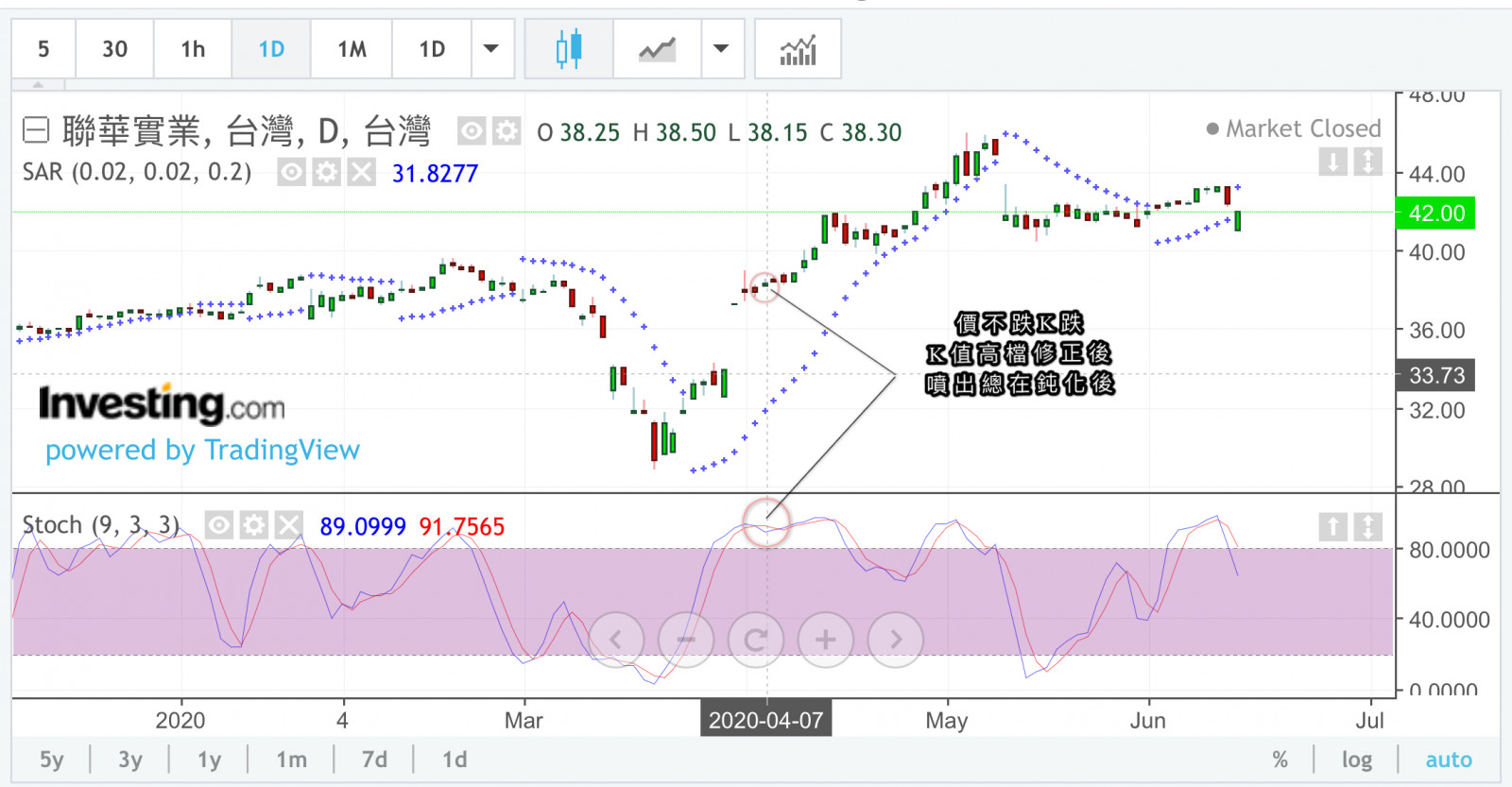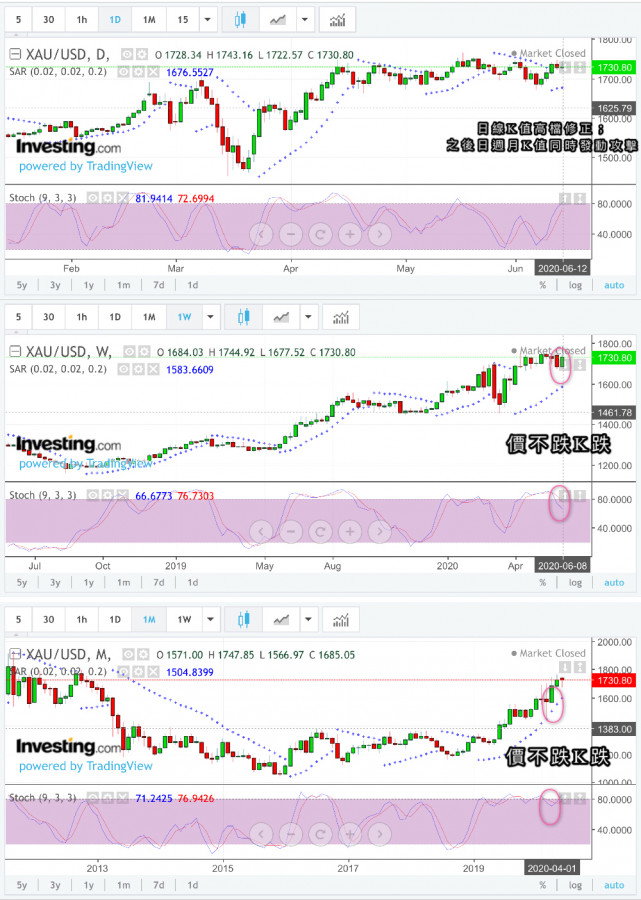 那麼第二波段高點價回測週線的位子就應該是(60週均線目前$1523),是否會回測呢(60週均線)?答案是不會的,因為在3月期間已經回測交代完畢了。它(價已經提前回測了),如果不知道的人就會誤判,這樣說來第二波段低點會在那裡呢?最差的狀況就是回測(20週均線$1659),讓週線KD值落在大約與3月的KD值(42)相當(目前為67),所以萬萬不可忽視整理完畢後的一個急跌急漲的快速修正KD值。