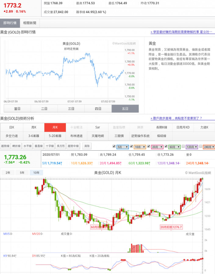 60月均線 / 120月均線,上升速度比上月增加目前價位1774 / +11,所以過去無心常說兩線交叉「前」與「後」見「高」或「低」點。