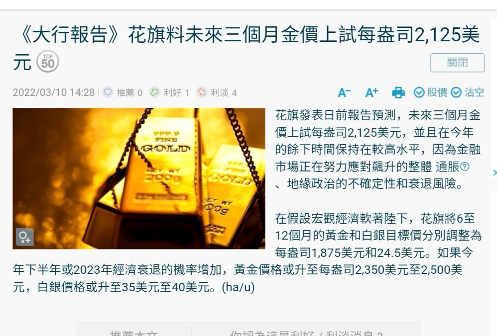 回覆 Quo:花旗這些理財磚家,預測金價經常天馬行空,...
