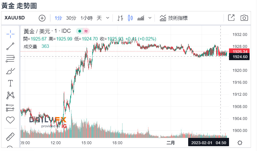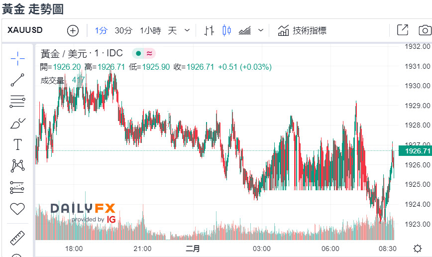 回覆 A06868:下圖是最近的黃金一分鐘走勢圖,在1924...