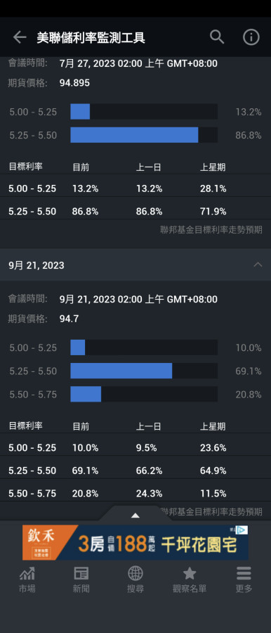 今年美聯儲現在5.25%,目標還有2碼(5.75%),我覺得必要加一點點風險,會到6%😜.