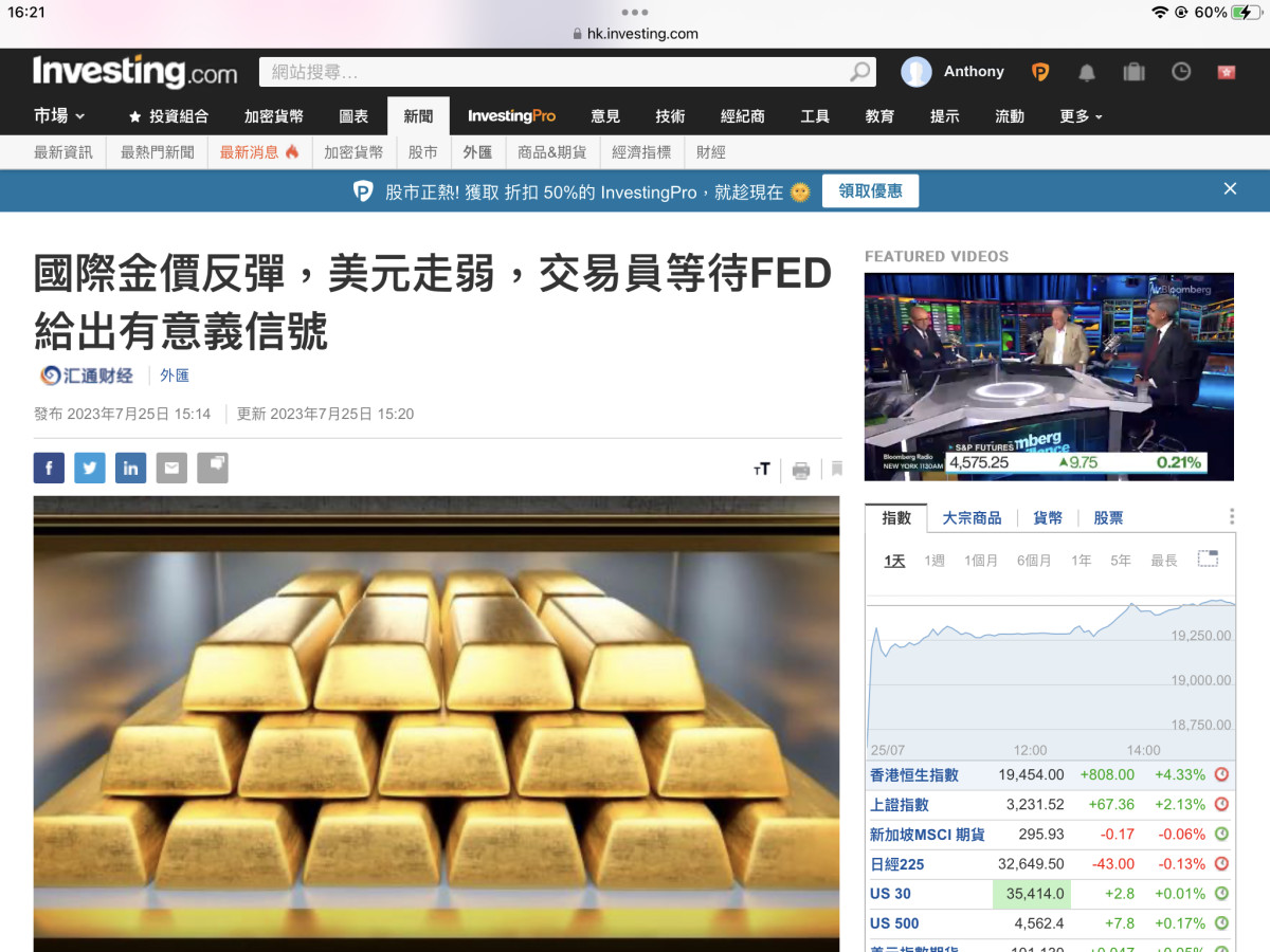 國際金價反彈,美元走弱?