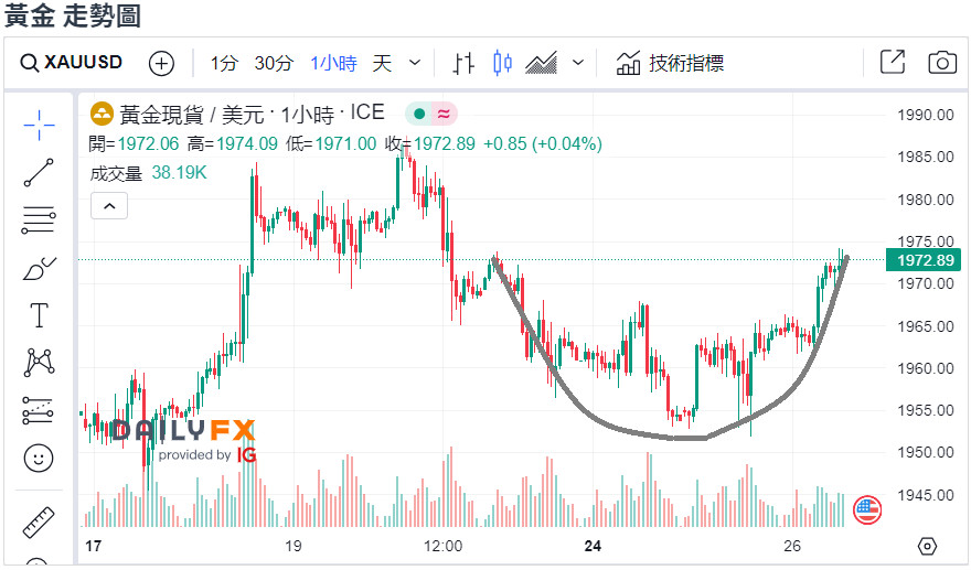 備註:依技術分析角度來看,碗型底是最強的底部型態,不過黃金走勢常常出乎意料,所以以上猜想純粹個人意見,僅供參考,不一定正確。