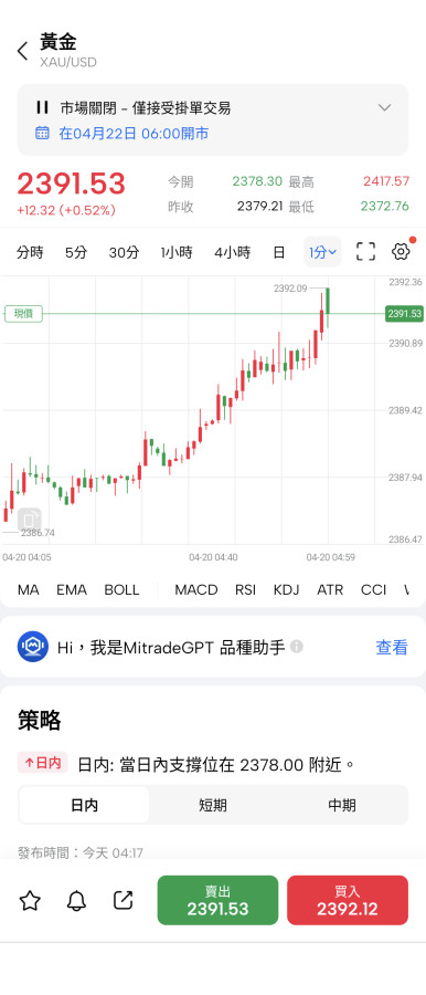 2392的收市價對於詭局多變的本週金價而言個人感覺是一個突破,代表金金還在衝,沒有什麼獲利了結的空間,藉此呼籲擁金的民眾別傻傻的聽專家做部份獲利了解,我還真怕你了解後會自行了斷呢!😭