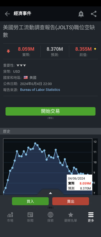 職位空缺數字紅,低於預期,卻是對黃金有利不漲,失望🥹