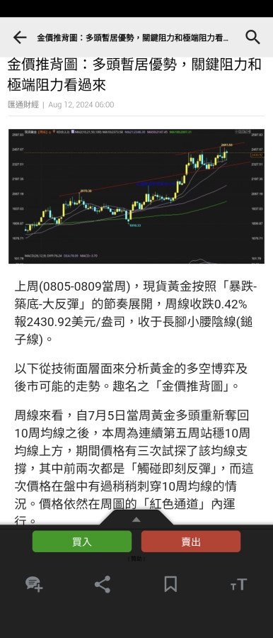 回覆 雄大:"金價推背圖:多頭暫居優勢,關鍵阻力和極...