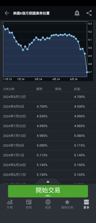 3、6個月期美國國庫券拍賣利率公佈一定會有驚喜😁.....我個人猜測狂跌📉