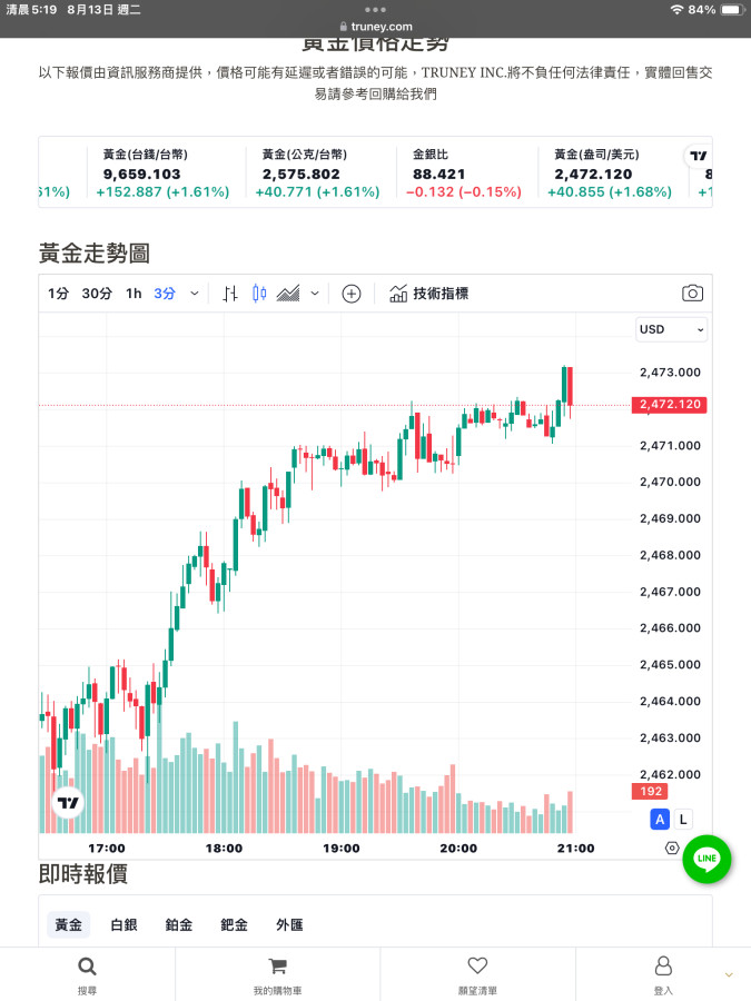 我們這邊銀樓基本就跑這個價 https://www.999k.com.tw/international-gold-prices/