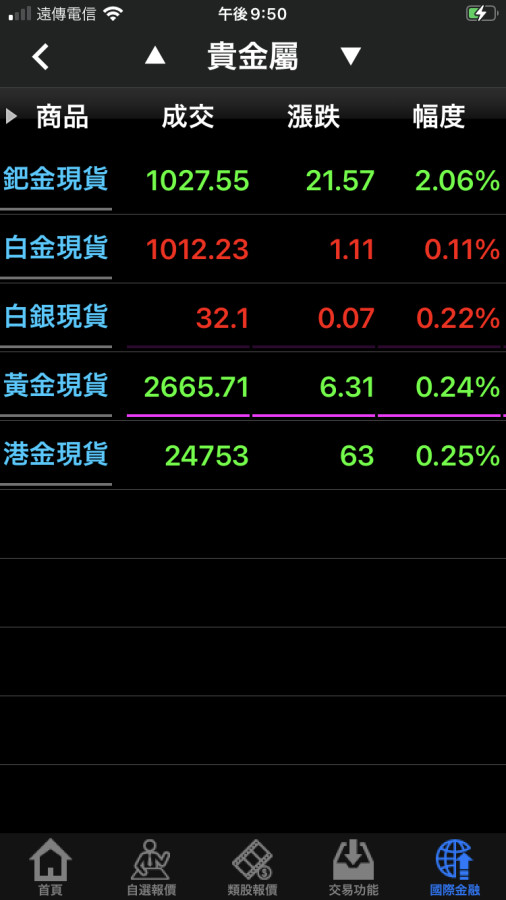 原本預期今天應該會多跌10美元的,還好夜盤有拉回來,反應在今天的金價如圖