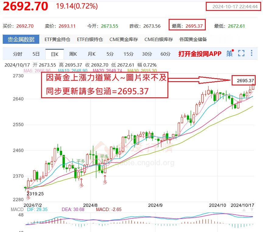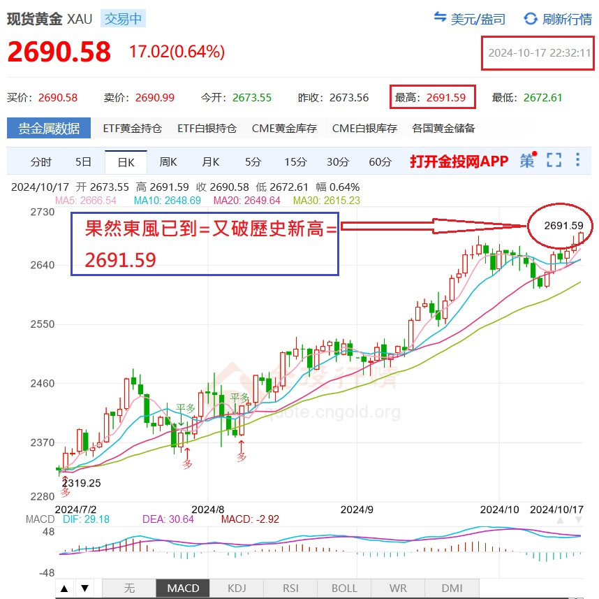 果然東風已至=再創歷史新高價=2692.19美元/盎司