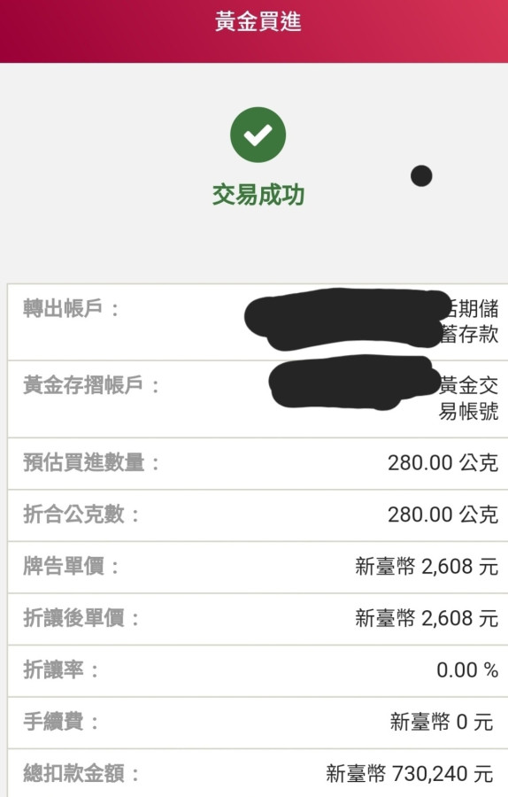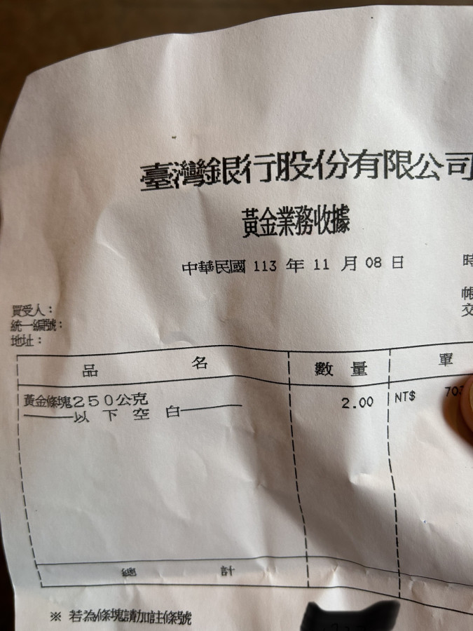 回覆 GoldenK:台銀回售的價格並沒有很漂亮而且稅也跑不掉...