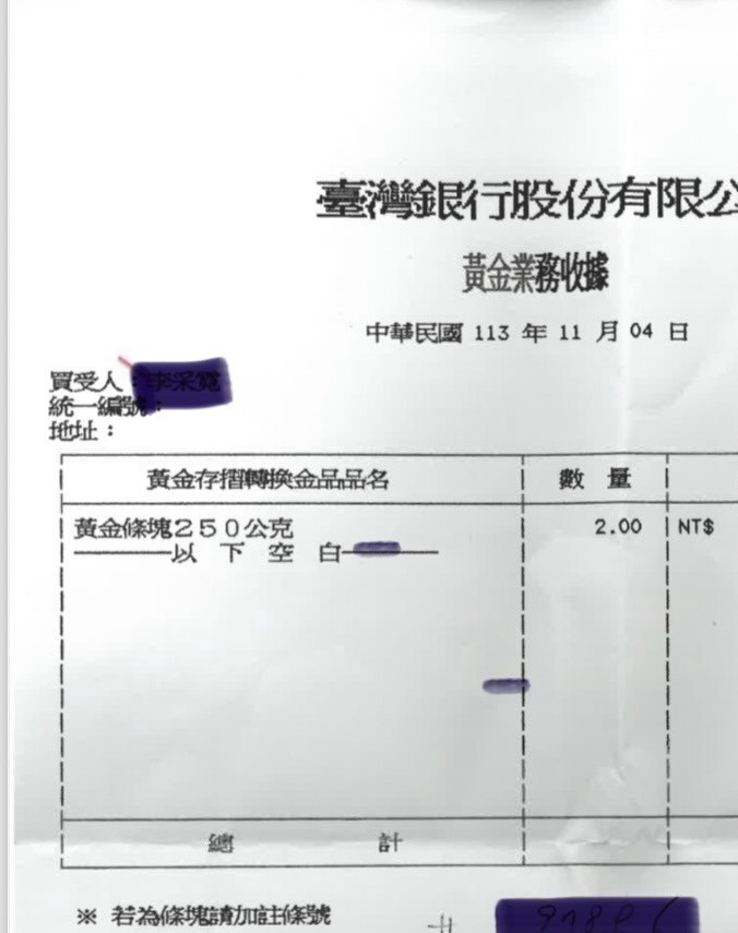 回覆 小舟:台銀250公克黃金條塊,不能回售。為何不...