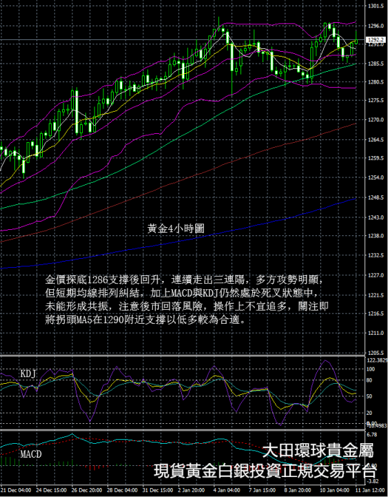 黃金價格1-11晚評國際現貨黃金走勢丨大田環球貴金屬