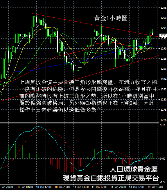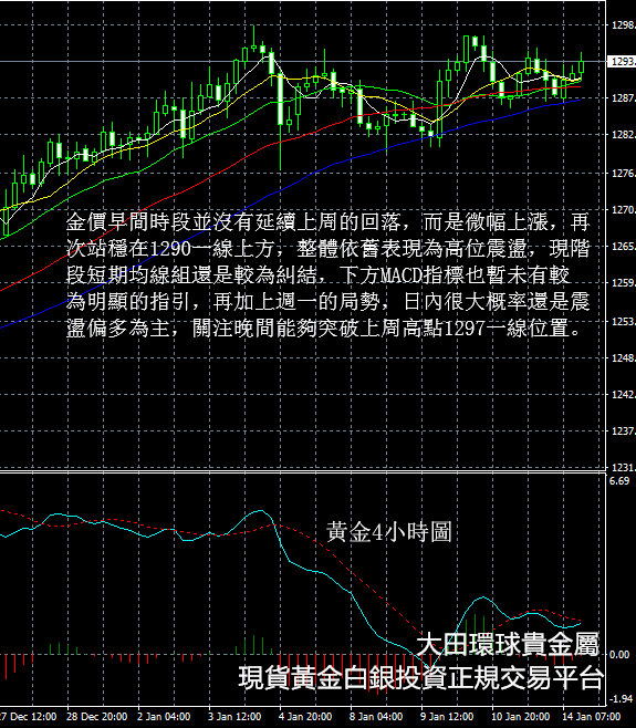 黃金價格1-14晚評國際現貨黃金走勢丨大田環球貴金屬