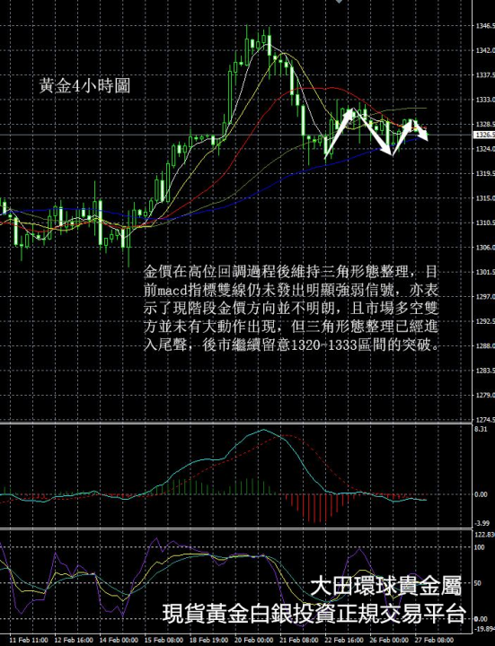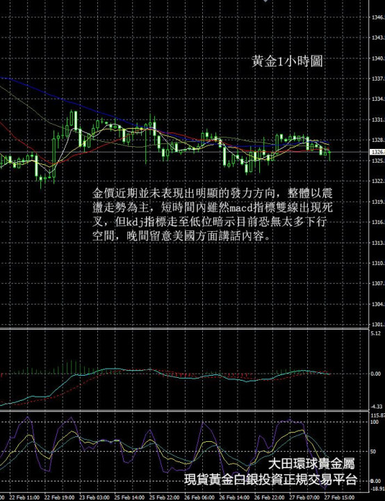 黃金價格2-27晚評國際現貨黃金走勢操作建議丨大田環球貴金屬