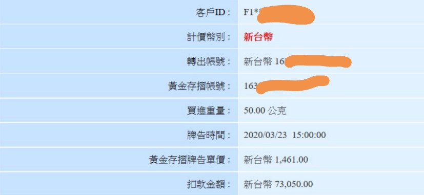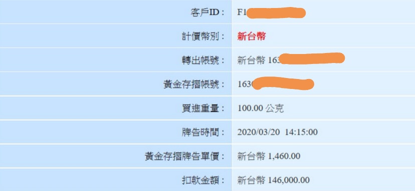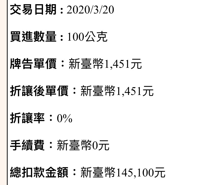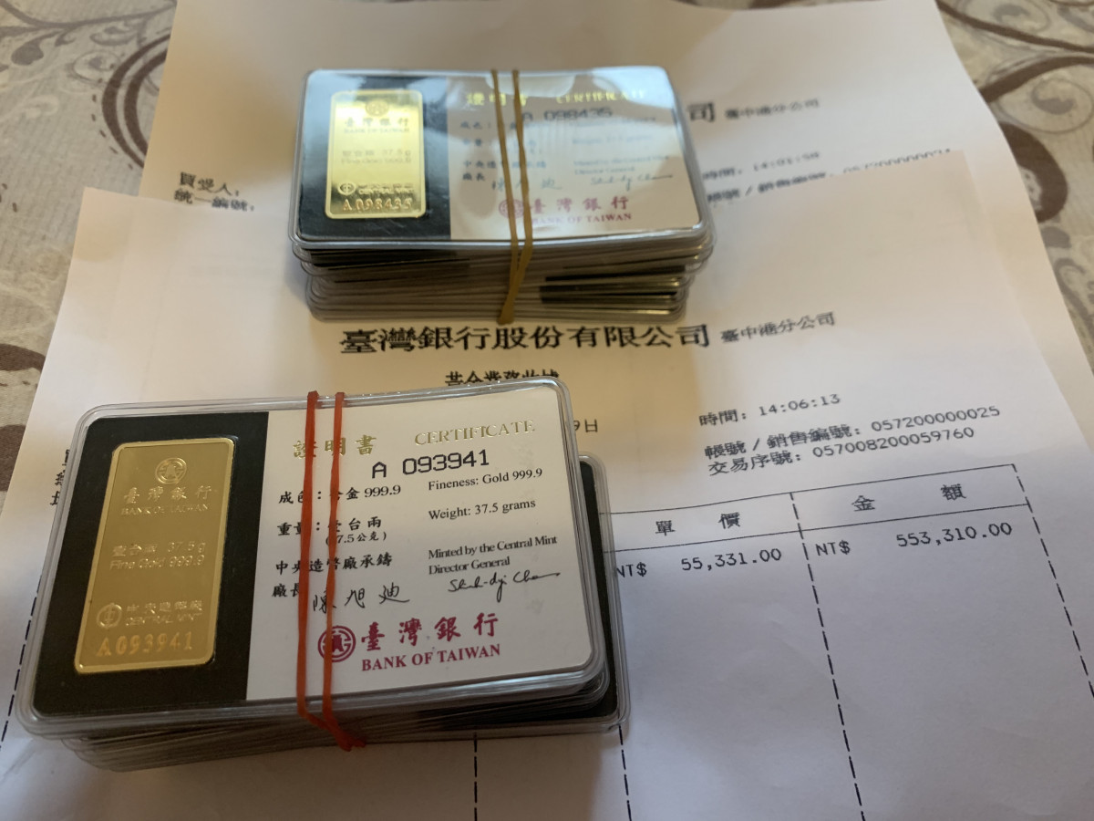 你這樣讓台銀賺太多了啦,將來賺了還要報稅,一頭羊被剝了好幾層,怎麼不去王鼎買呢? 總共只抽0.7%,買多了就很划算。
