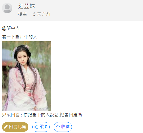 請回答 : 你跟圖中的人說話 , 她會回應嗎