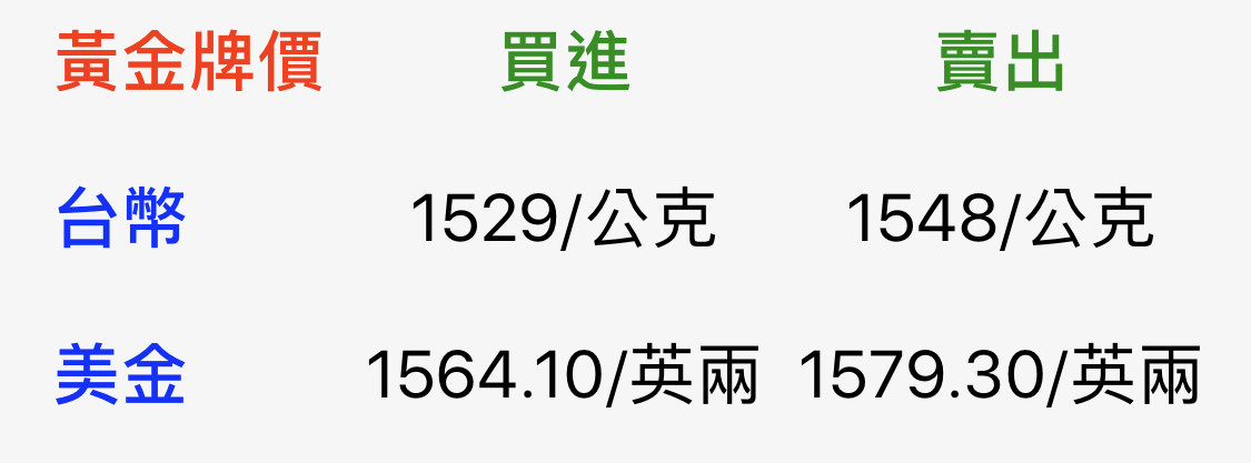 回覆 楚雲:今天站上的金價和台灣銀行的美金、新台幣金...