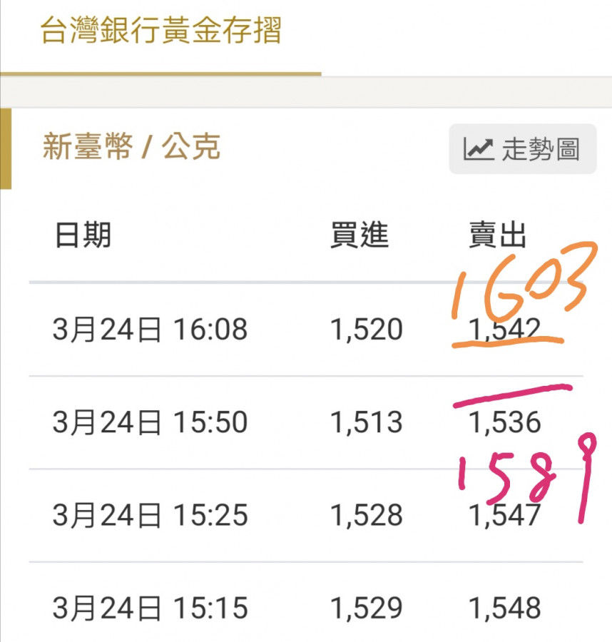 我也是這樣估算。但現在進入台銀盤售出每克才1529元,差很多