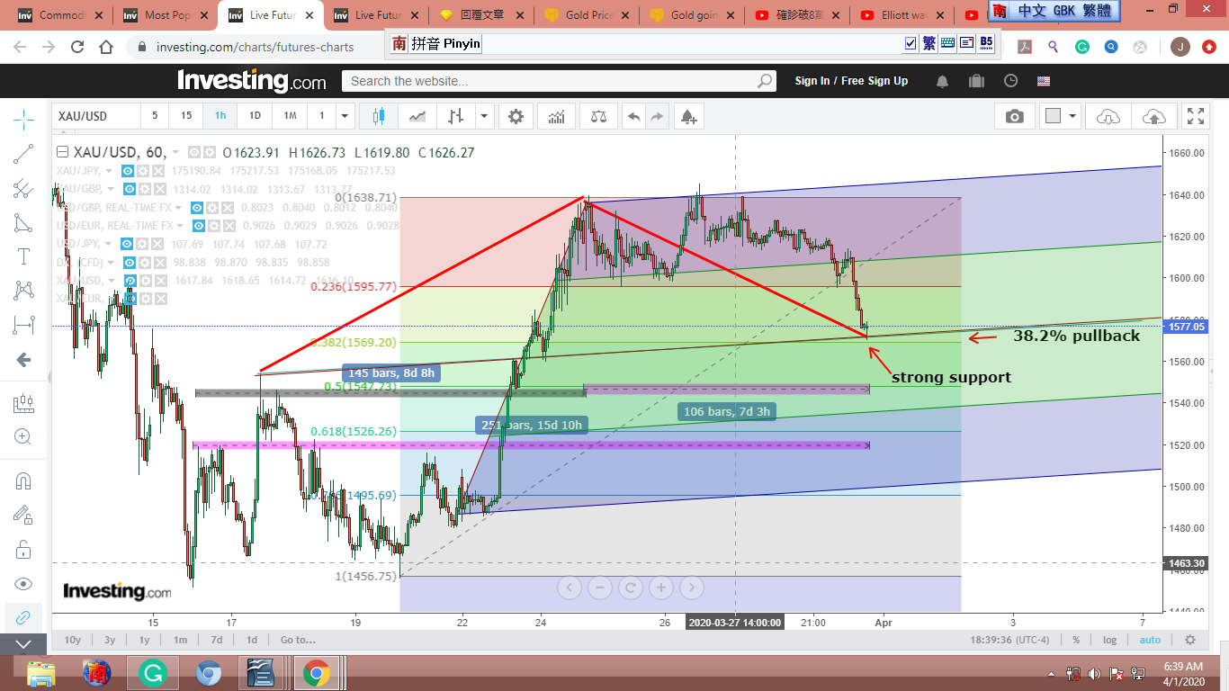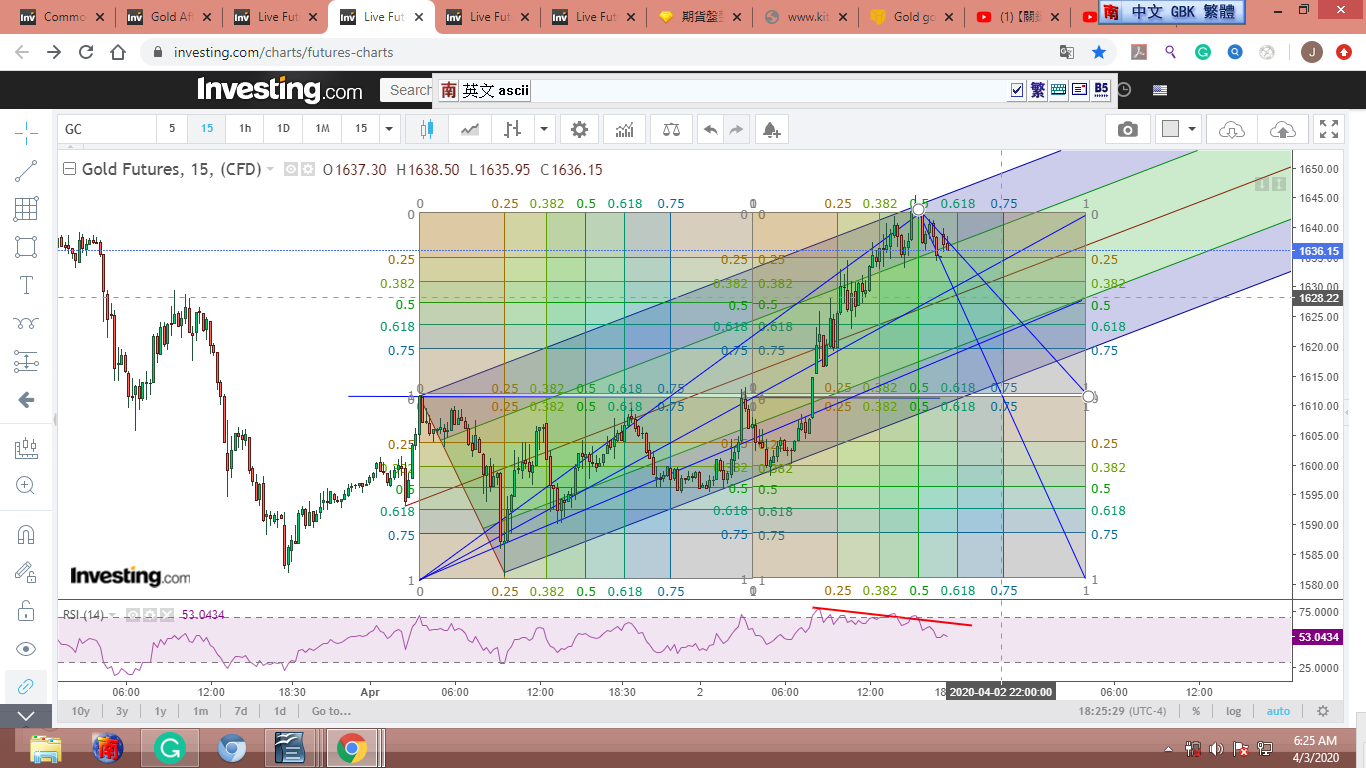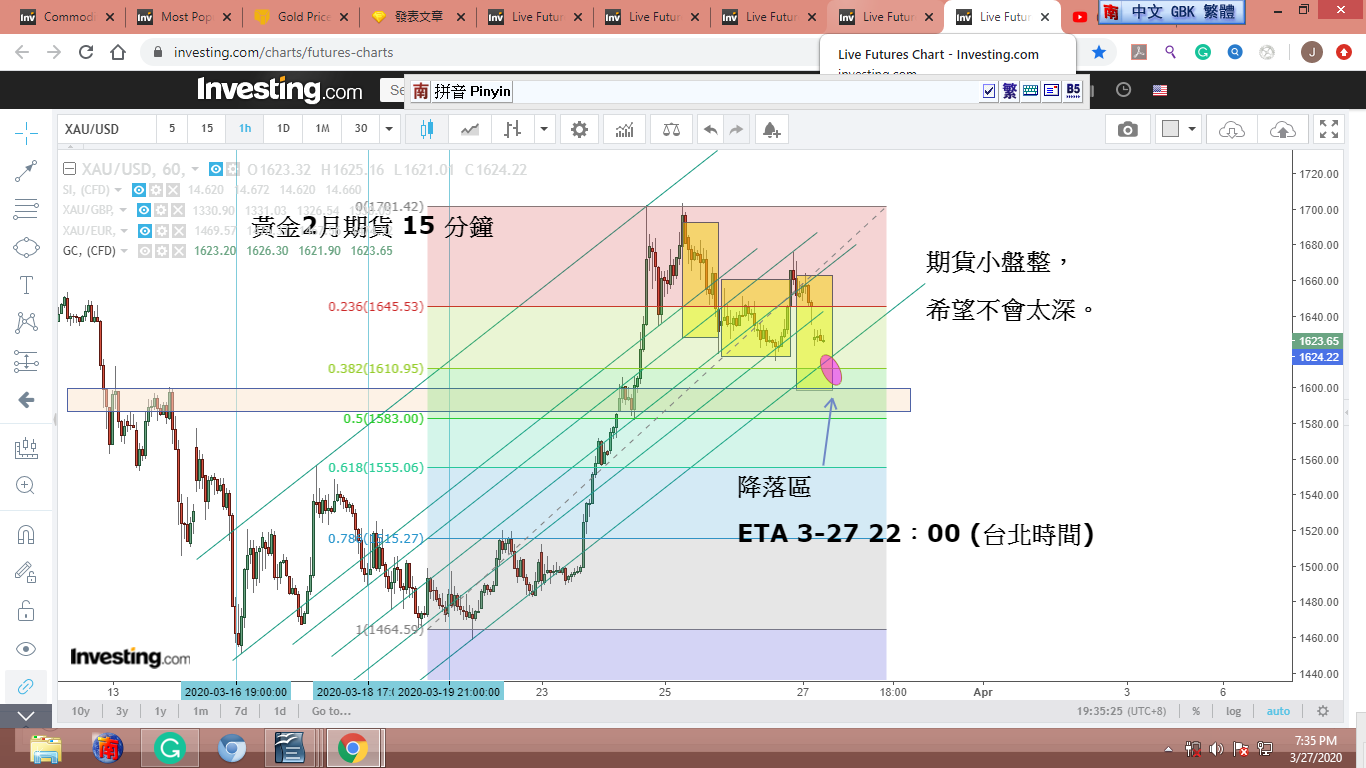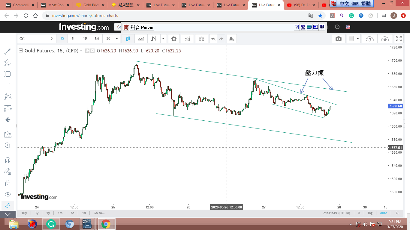 GC (黃金期貨) 1) 已回升200% 2 碰到數條壓力線