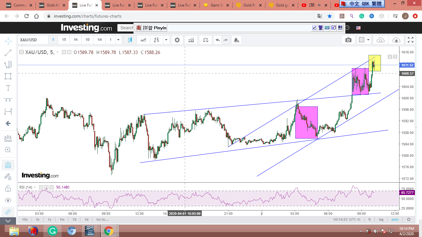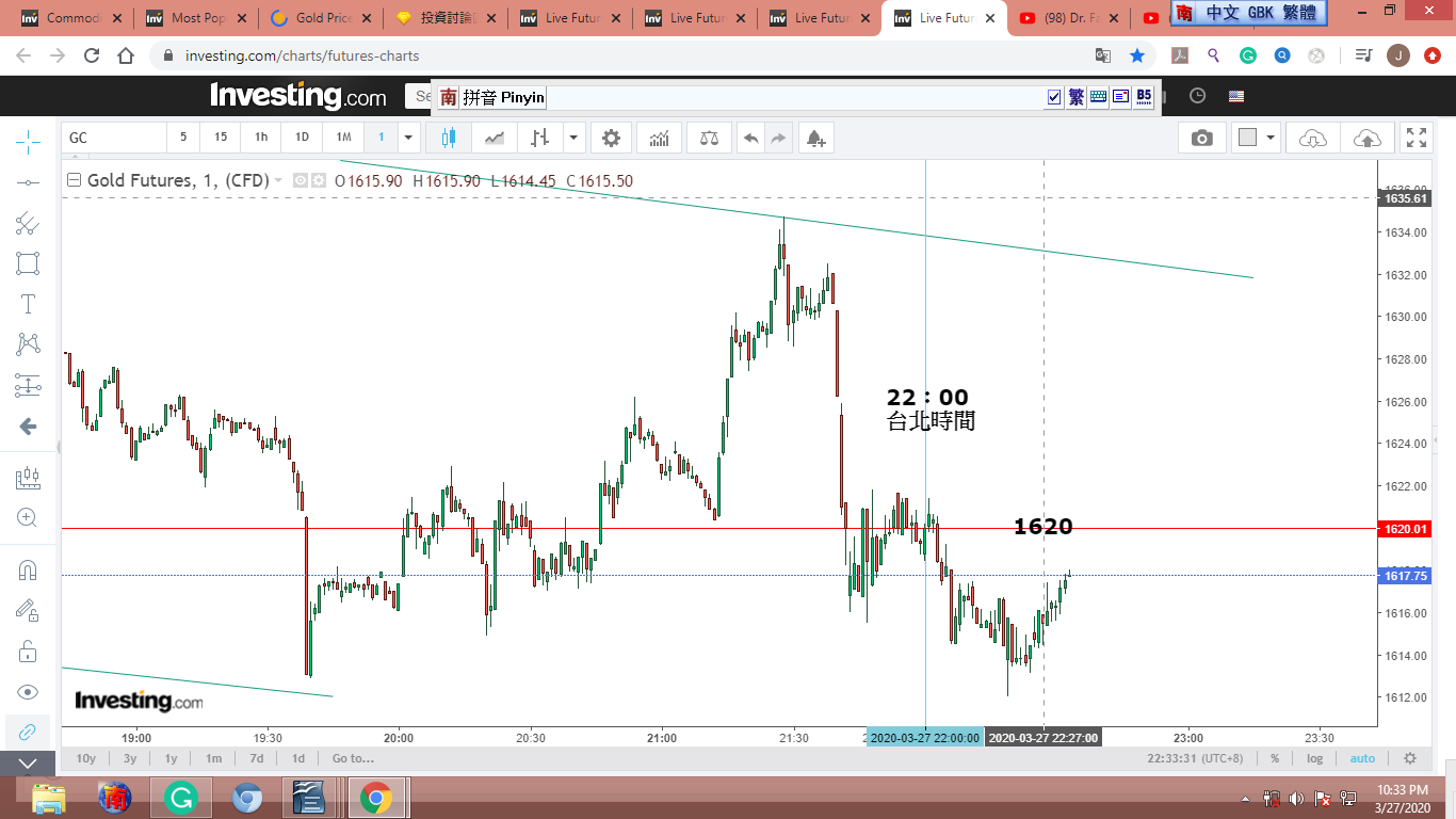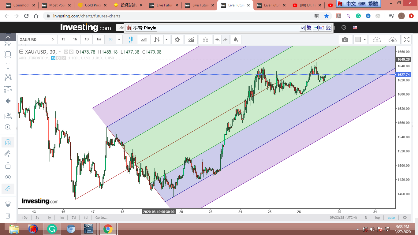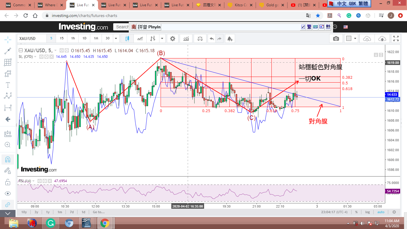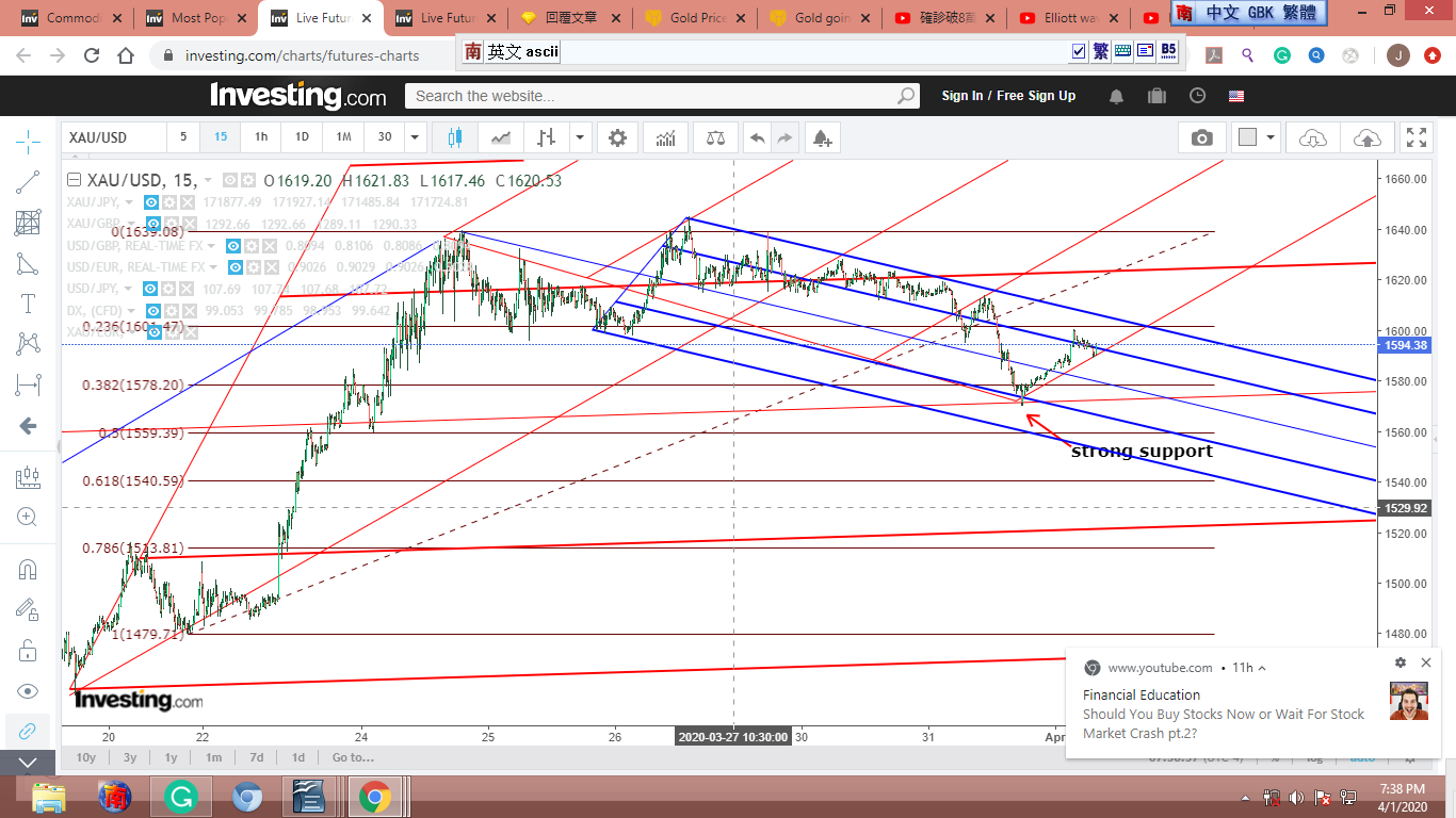 GC (黃金期貨) 1) 已回升200% 2 碰到數條壓力線