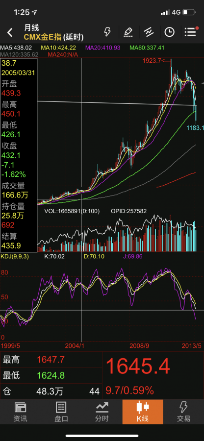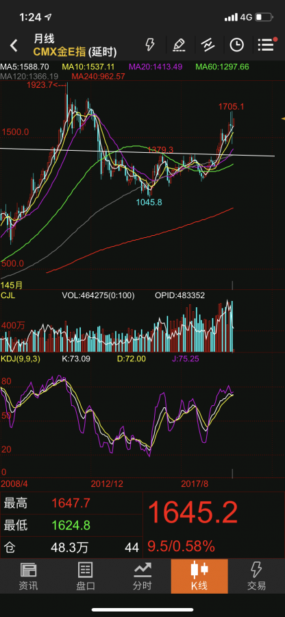 之前預測是每一季見高點<<1700/1800/1900/2000>>如果是這樣那麼金價在2000坐回測時回測的深度非常大。一切均為預測理當配合當下時事狀況再進行分析。