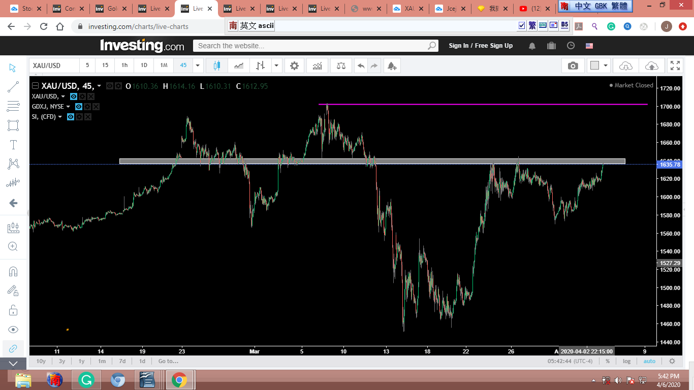 全球疫情日增把大家都嚇壞了,股市和黄金處在多空交戰⋯⋯也可能黃金一口氣先沖到1700~