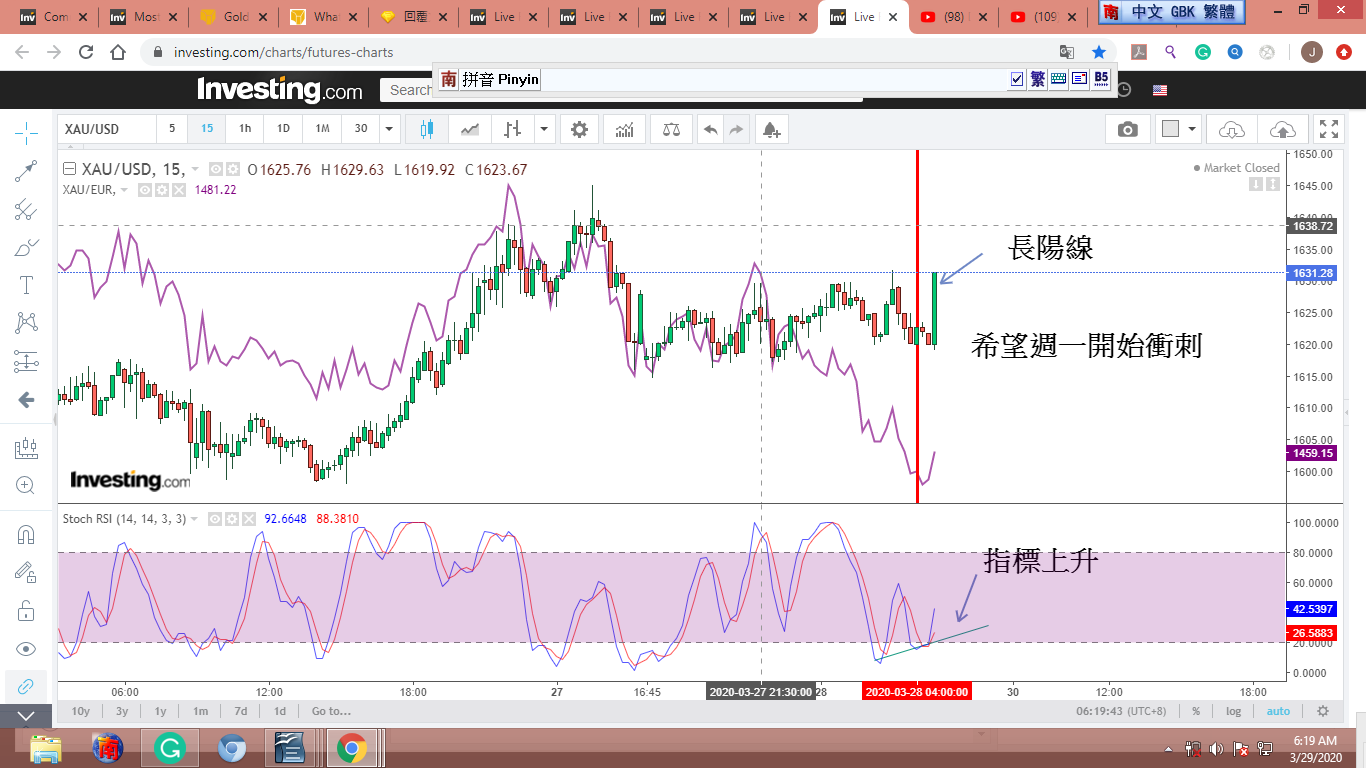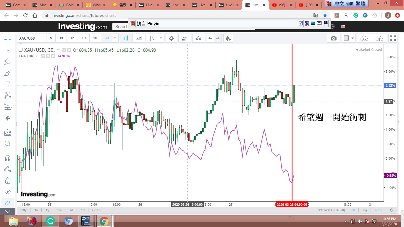 週一如果開高,金子就衝出了膠著區,我當然會買進。 (可惜,我現在手頭緊,沒沒餘錢。)