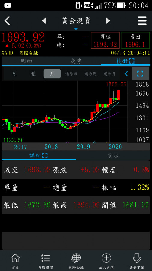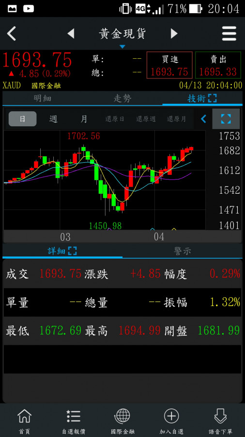 最近幾天黃金現貨價格強勢整理..