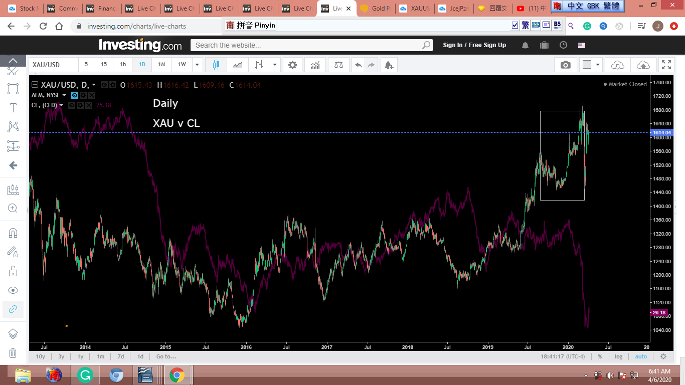 圖 4: XAU v CL (德州原油)