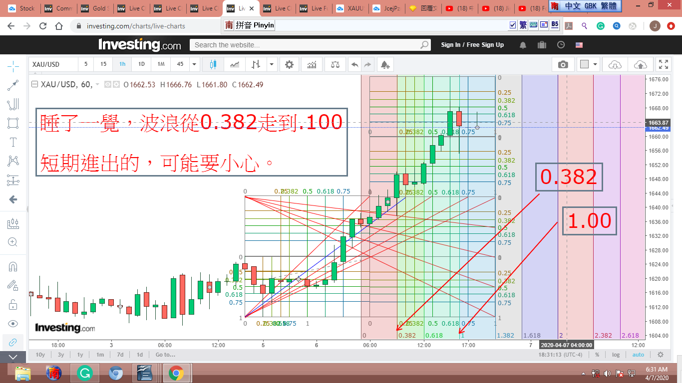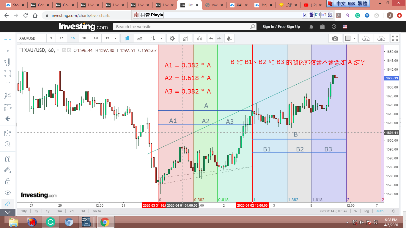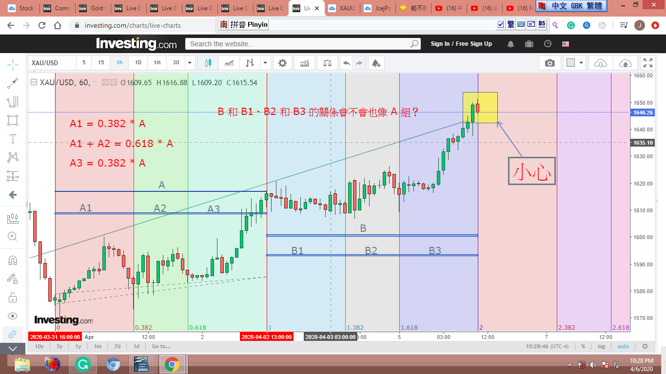 目前黃金中波段來看,正在走2018年8月開始的第5波,如果從小波來看,是從今年3月底開始走的第5波,換算起來仍有不小空間