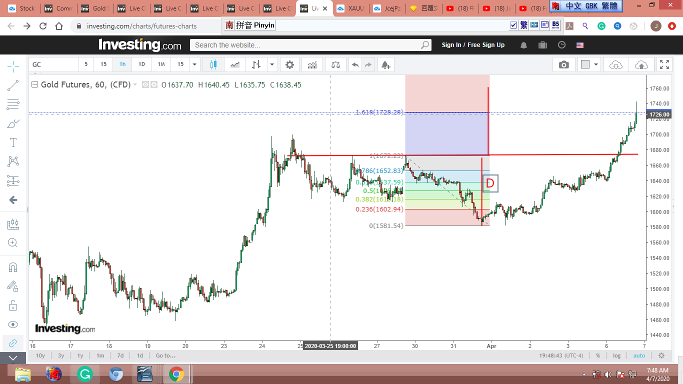 結論是,先接受相對樂觀的情境,如果夏天疫情趨緩、秋冬即使再來1次也不會那麼嚴重,實體經濟需要時間恢復,金融市場在政府支撐下打第2隻腳,那麼從技術分析來看,下一個目標區1800~1850美元,夏天結束前有很大機會看得到。但若是金融市場往下打第2隻腳沒有成功,就有機會看到1900美元以上了。