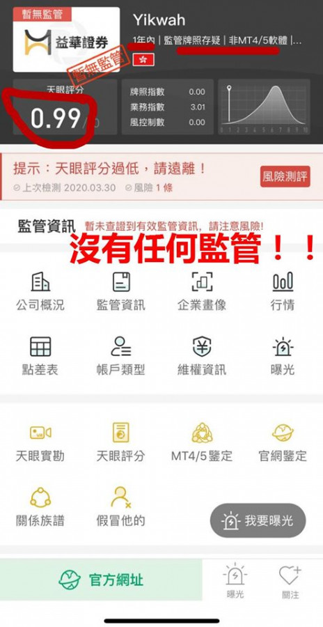這個團夥兒在台灣真是臭名昭著,希望大家保持警惕,不要到沒有監管的平台做交易。選擇平台前來找小編咨詢下,或者直接用外匯天眼APP查詢真假,多一個參考總不是壞事兒,畢竟做投資資金安全是最重要的。