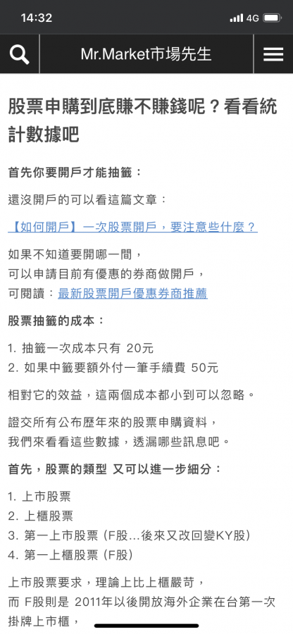 那種興櫃轉上櫃的我弟是看抽籤截止前兩天股價浮動狀況決定抽不抽,我是看價差有沒有超過20%來決定……