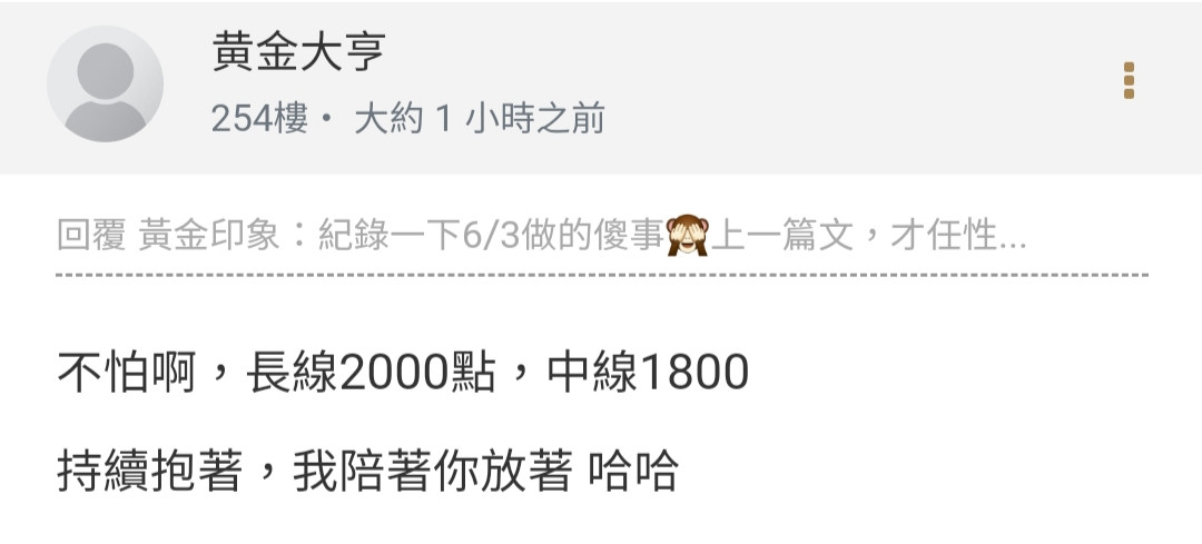 回覆 黃金印象:姐姐不是作祟……是怕您們看盤太悶🤭都不能...