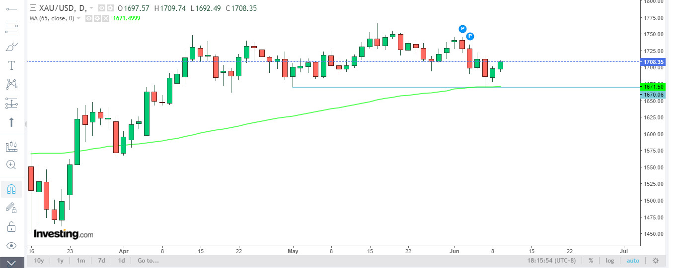 昨晚情況守住了1670.98並反彈至1685.18(數據參考investing.com,下同)