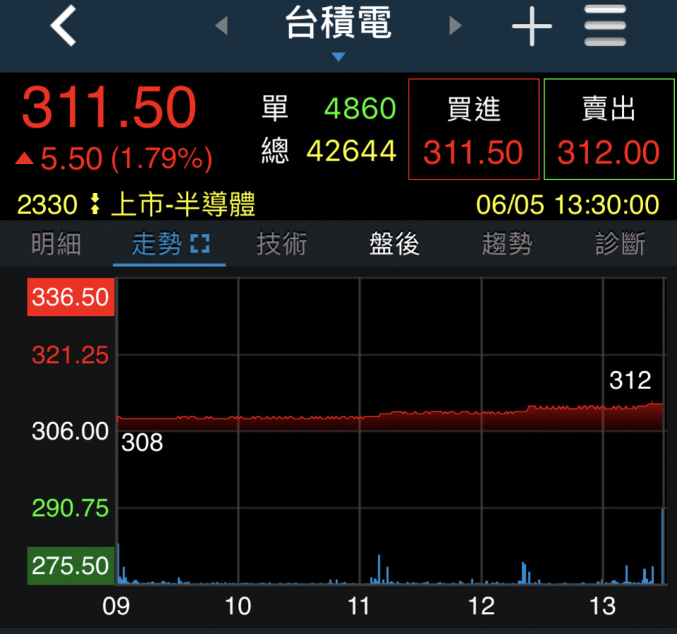 今天是美好的一天唷~台積電漲