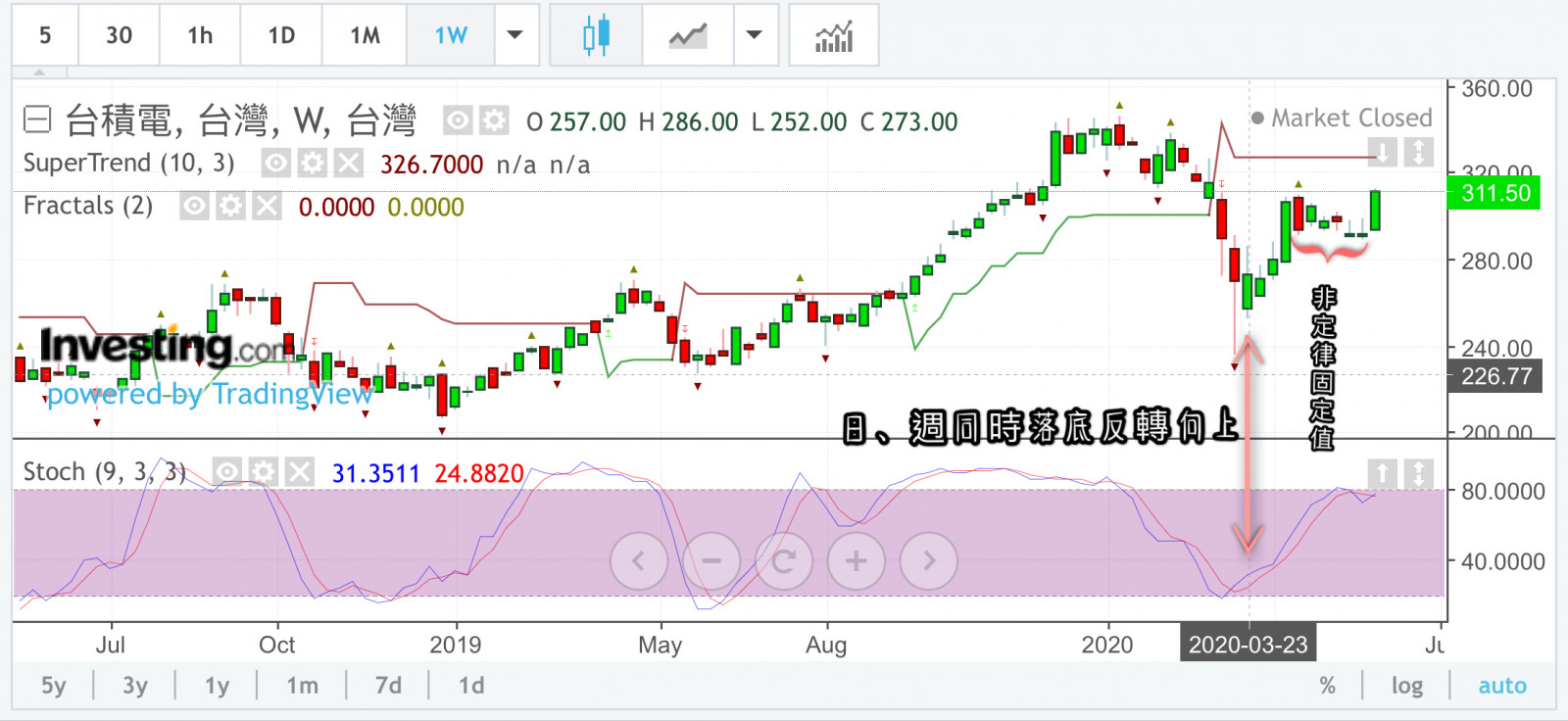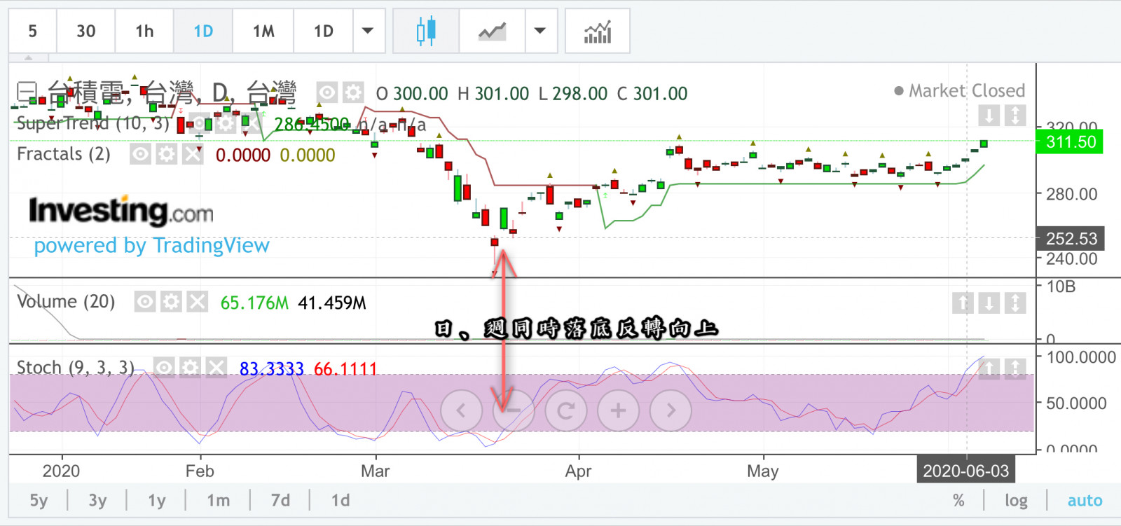 《 要知道日/週KD落底是月KD的引起的,只要月KD稍微震動一下日週就有大震盪。》