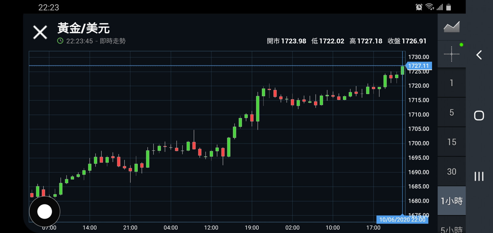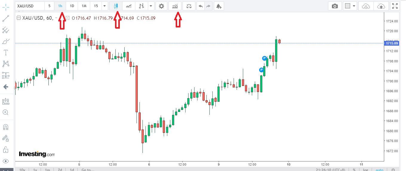 進入圖表後先按小時圖和開陰陽燭圖及然後加指標