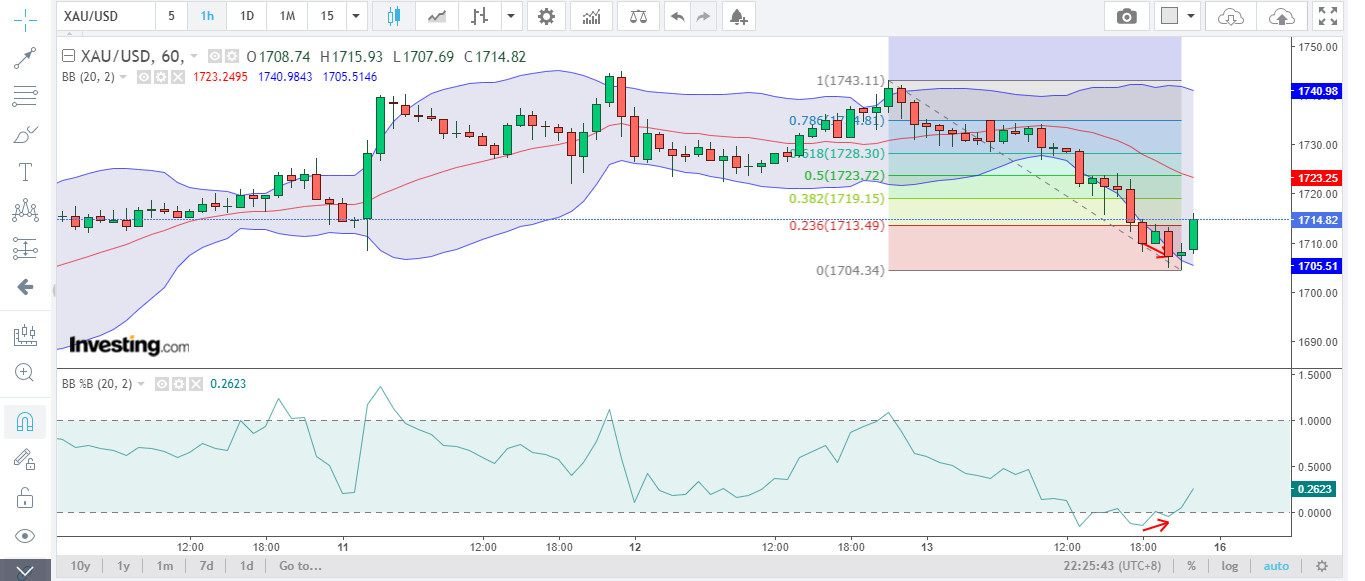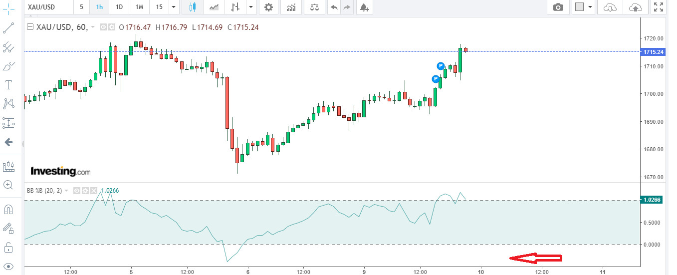 等價格回落到BB%B跌穿0代表「超賣」(有機會反彈)後,你就買吧(可能要等明天甚至後天,也有機會到時的價格比現在高,但相對風險會低很多)