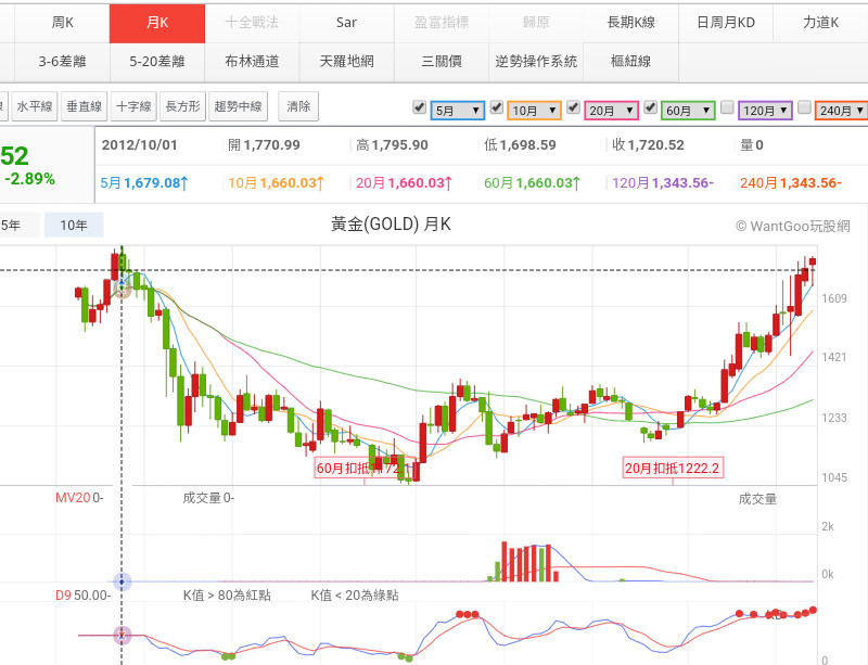 月線圖上的油標指處均線位子是在告訴你對照目前的均線位子,將於七月月均線上升的位子便是歷史月均線相近。